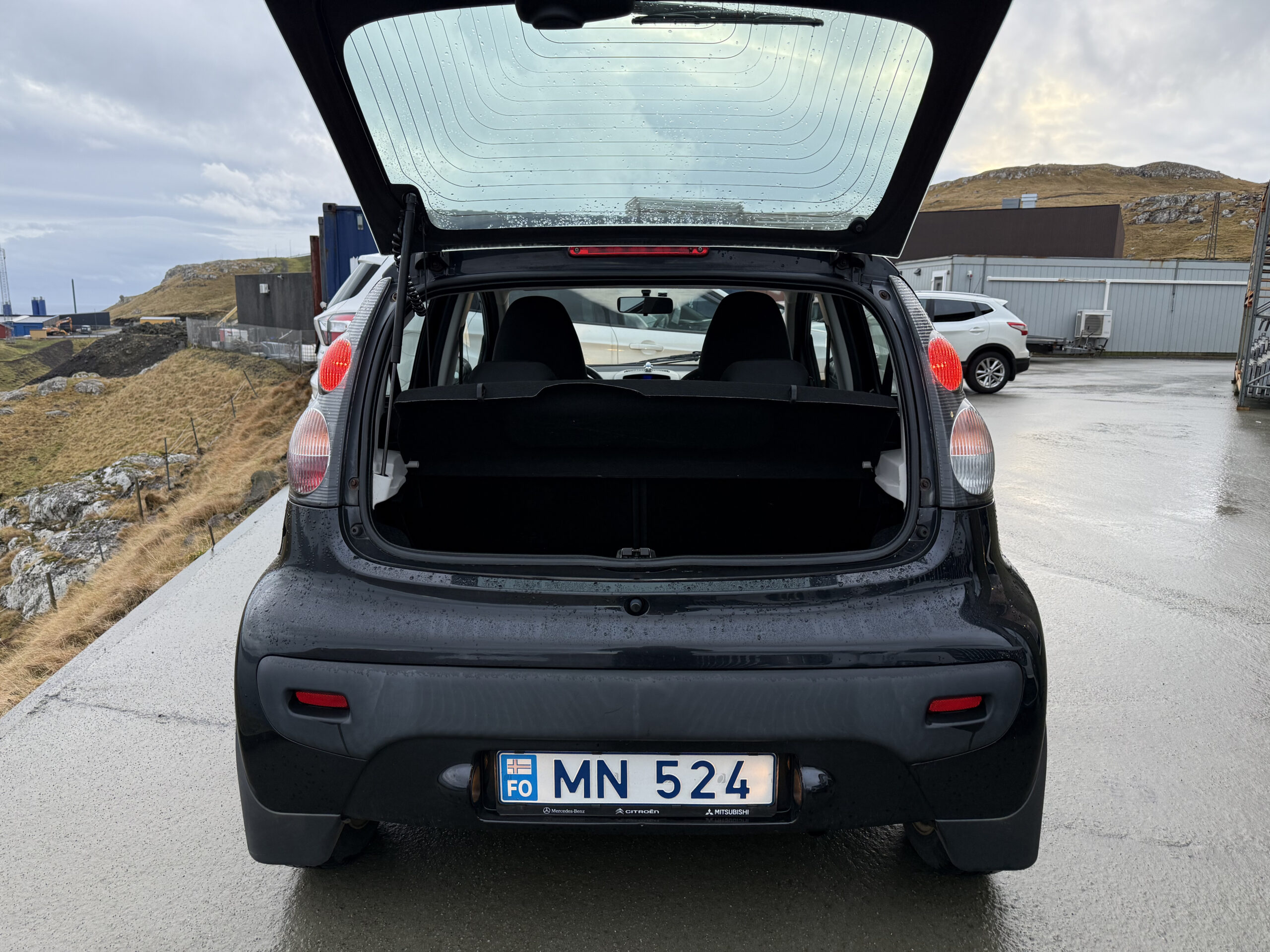 | Farva inni í bilinum | Svart stoff |